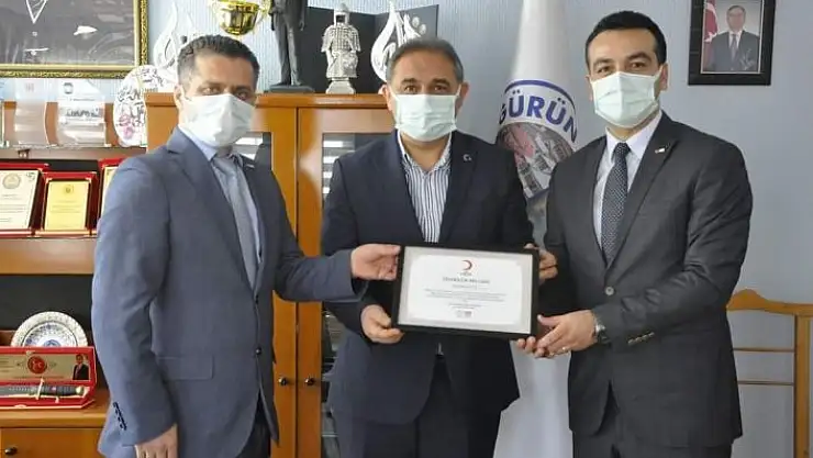 Sivas Kızılay Kan Merkezi, Gürün Belediye başkanı Nami Çiftçi´ye desteklerin ötürü teşekkür plaketi taktim etti.