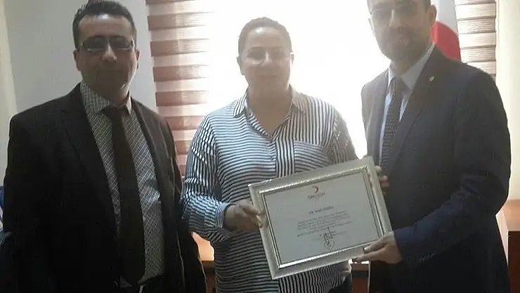 Adıyaman’ın Kahta ilçe Devlet Hastanesine Kızılay tarafından teşekkür belgesi verildi.