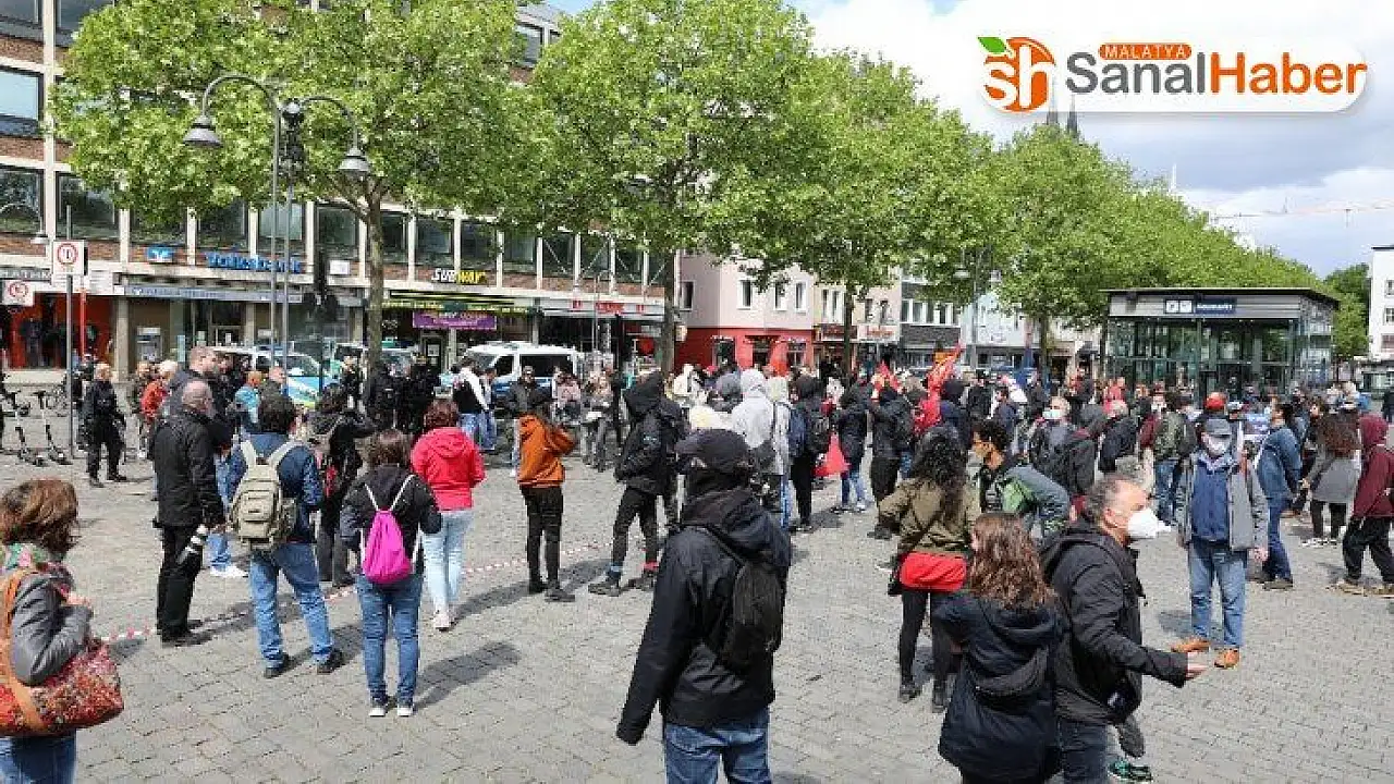 Köln’ün çeşitli semtlerinde 1 Mayıs Emek ve Dayanışma Günü nedeniyle düzenlenen gösterilere katılan vatandaşlar sosyal mesafe kuralına uydu.