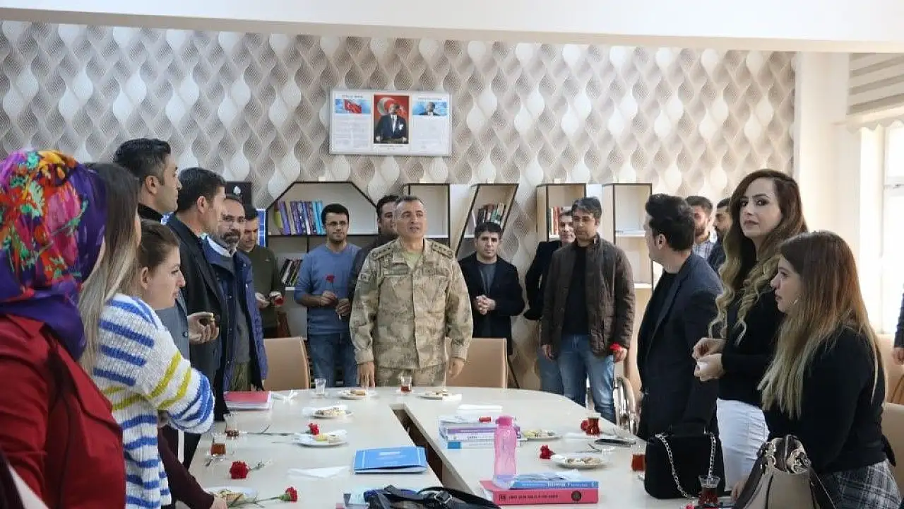 İl Jandarma Komutanı Albay Ercan Atasoy ve jandarma personeli okulları ziyaret ederek, öğretmenlerin 24 Kasım Öğretmenler Gününü kutladı.