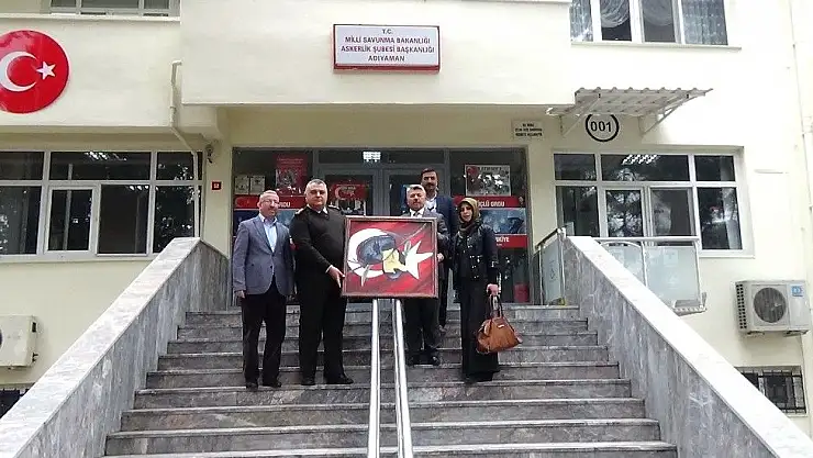 Adıyaman Halk Eğitim Merkezi Resim Öğretmeni Servet Sayın tarafından resim yapıldı. Türk Bayrağı üzerine zeytin dalı ve zeytin, asker ve bayrak temalarının işlendiği tablo Halk Eğitim Merkezi Müdürü Aziz Özbilgiç, Resim Öğretmeni Servet Sayın, Sezai Yılmaz tarafından tablo Adıyaman Garnizon Komutanı Albay Davut Kulalar’a hediye edildi.