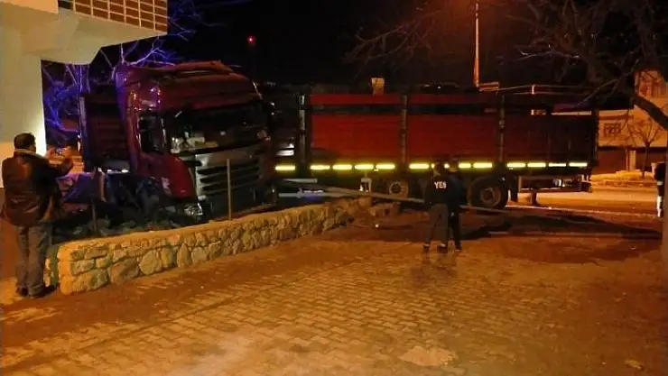 'Kontrolden çıkan tır bahçe duvarına çarparak durabildi'