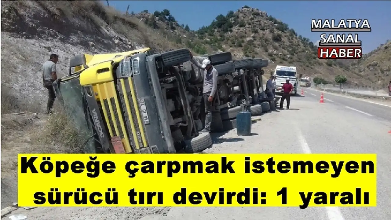 Adıyaman’ın Gölbaşı ilçesi Malatya karayolunda köpeğe çarpmamak için manevra yapan sürücünün kullandığı tır devrildi. Kazada tır sürücüsü yaralandı.