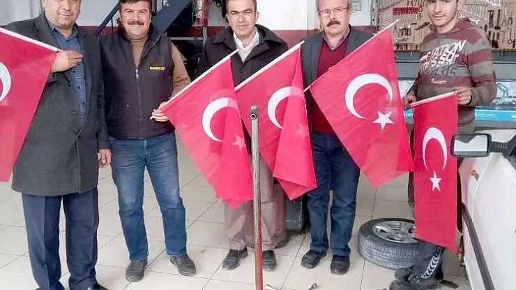 Adıyaman’ın Besni Küçük Sanayi Sitesi Başkanı Haci Arslan, Kooperatif Memurları Salih Ağır ve Bülent Arslan ile birlikte Afrin’de terör örgütlerine yönelik başlatılan Zeytin Dalı Harekatına destek amacıyla ve şehit Enes Sarıaslan ile tüm şehitlerin anısına iş yerlerine asılması için sanayi esnafına Türk bayrağı dağıttı. Türk Bayrağı dağıtımında esnaflar bu durumu memnuniyetle karşılayarak başkan Haci Arslan’a teşekkür ederek, Afrin’e gitmeye hazır olduklarını söyledi.