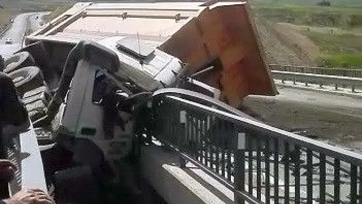 'Kum yüklü kamyon köprüde devrildi'