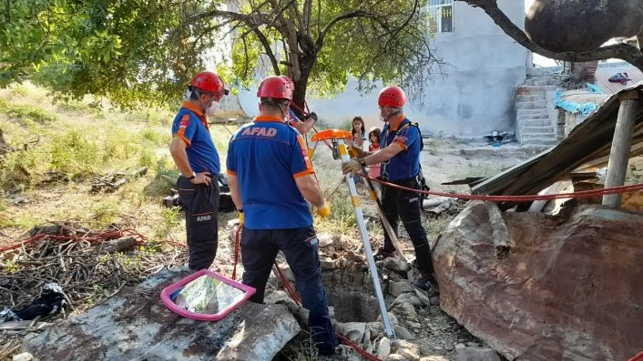 AFAD ekipleri ihbar üzerine olay yerine gitti. Üç günden beri susuz kuyuda mahsur kalan ve çıkartılamayan yavru köpeği çıkartmak için çalışma başlattı.