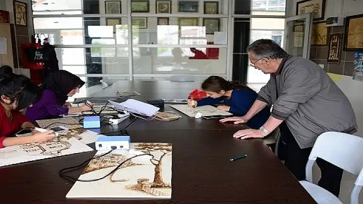 üzerine havya ile ahşabın yakılarak yapıldığı kursa katılan 73 yaşındaki