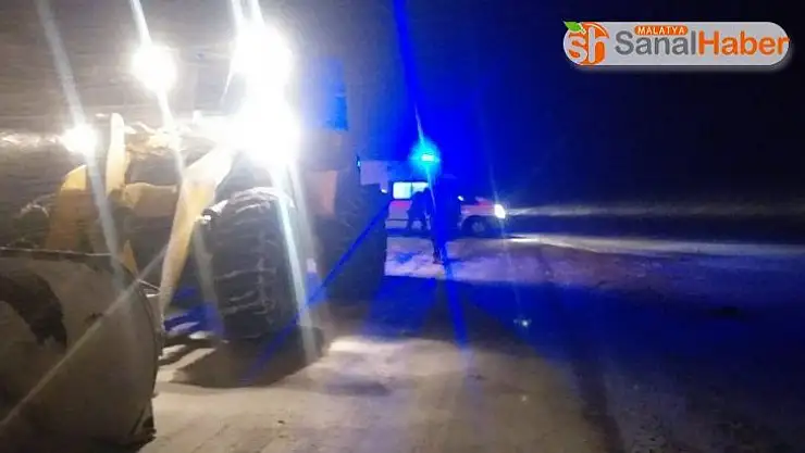 Sivas’ın Gürün ilçesinde kar ve tipi nedeniyle mahsur kalan ambulansın imdadına iş makinesi yetişti.