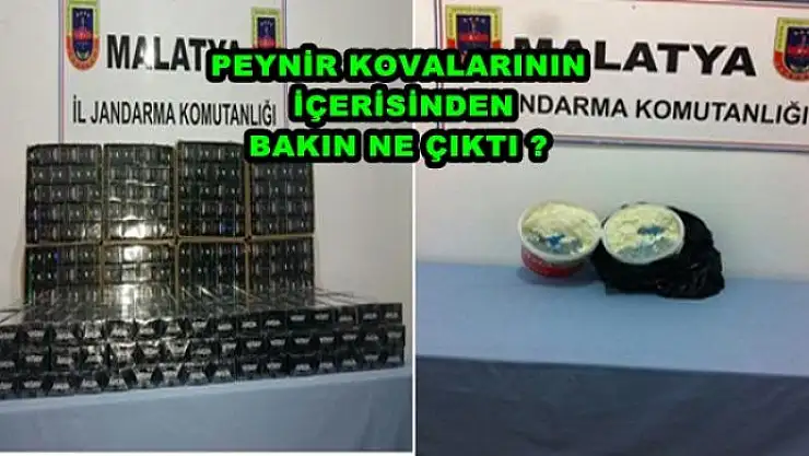 Malatya İl Jandarma Komutanlığı tarafından yapılan çalışmalarda, çok sayıda kaçak sigara ve peynir kovaları içerisinde esrar maddesi ele geçirildi.