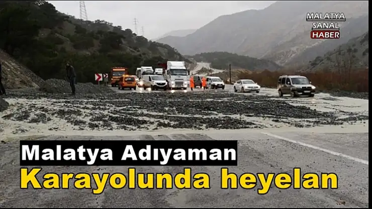 Adıyaman-Malatya karayolunda aşırı yağış nedeniyle heyelan meydana geldi.