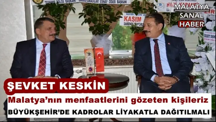 Malatya Esnaf ve Sanatkarlar Odaları Birliği (MESOB) Şevket Keskin,Malatya Büyükşehir Belediyesinde yeni dönem idare kadrolar oluşturulurken tek kıstasın liyakat olması gerektiğini ifade ederek, “ Bu süreçte Genel Sekreter, Sekreter Yardımcıları başta olmak üzere daire başkanları belirlenirken şu cemaatin adamı, şu grubun adamı, şu siyasetçinin adamı, benim adamım demeden tamamen liyakat esas alınarak kadroların dağıtılması gerekiyor” dedi.