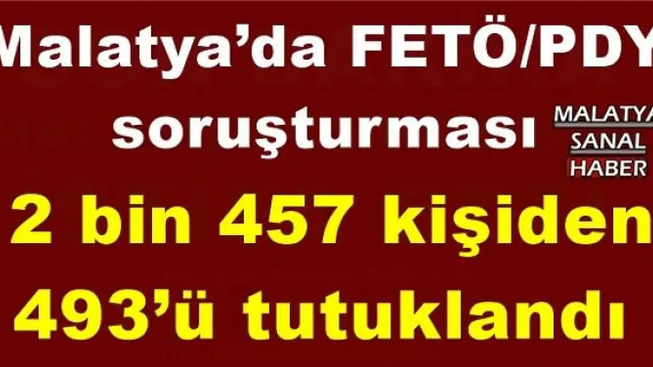 Malatya Cumhuriyet Başsavcılığı tarafından, 15 Temmuz darbe girişiminden bu yana Malatya’da 2 bin 457 kişi hakkında soruşturma yürütülürken hakkında soruşturma açılan 493 kişi tutuklanarak ceza evine gönderildi.