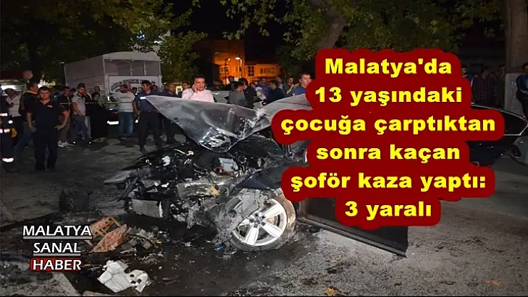 Malatya’da 13 yaşında bir çocuğa çarptıktan sonra durmayarak kaçmaya çalışan otomobil sürücüsü kaza yaptı. Kazada 3 kişi yaralandı.