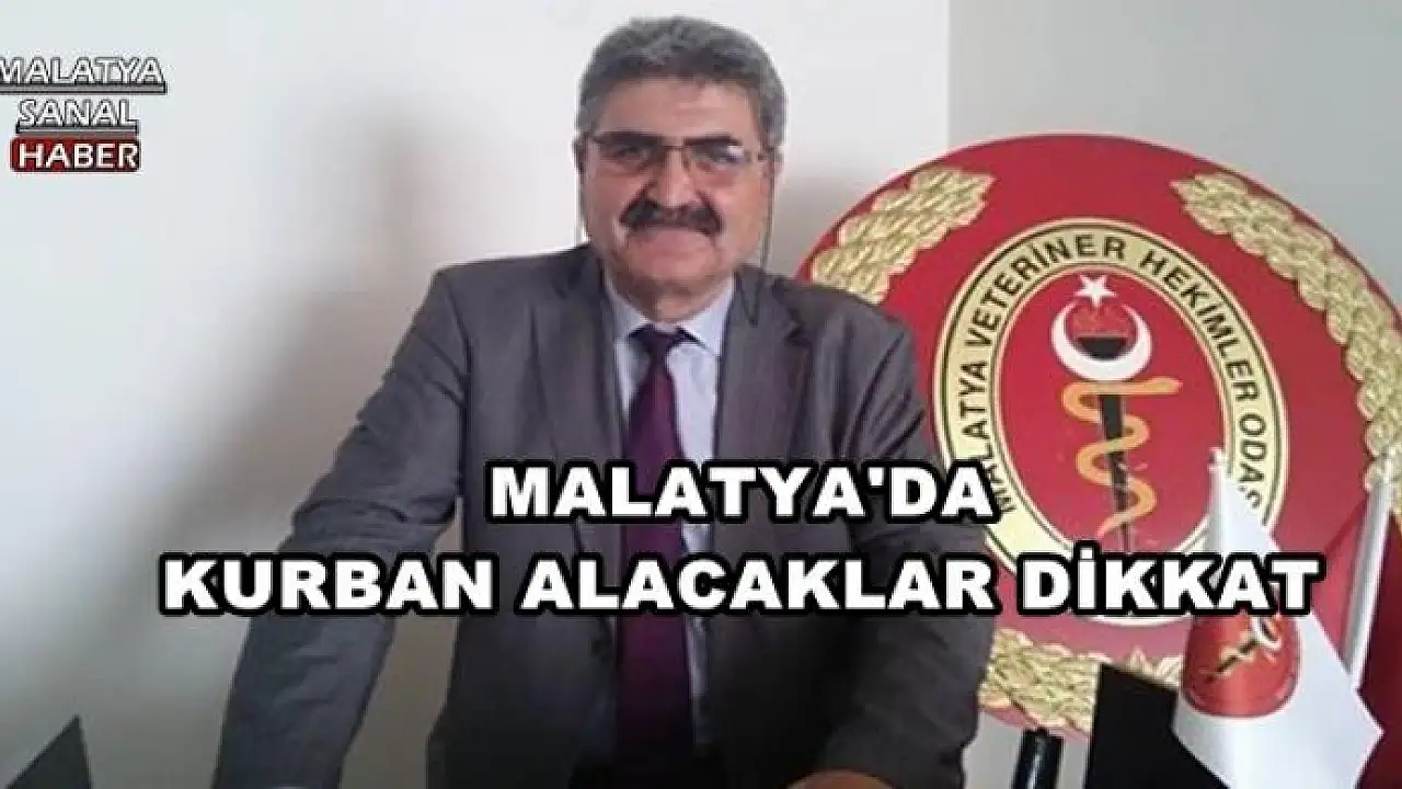 Malatya Veteriner Hekimler Odası Başkanı Ertuğrul Özdemir, kurbanlık hayvan alımlarında dikkat edilmesi gereken hususlarda vatandaşlara uyarılarda bulunarak “Vatandaşlarımız, sağlık raporu olmayan, sığır ve mandalarda küpesi ve pasaportu bulunmayan, çok zayıf ve gebe olan, yeni doğum yapmış olan, çok genç ve etleri olgunlaşmamış olan ve hastalık belirtisi gösteren hayvanları kurbanlık olarak almasınlar” dedi.