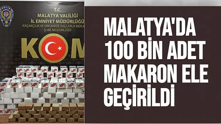 Malatya´da polis ekipleri tarafından yapılan çalışmalarda toplam 100 bin adet adet, içi dolu ve boş makaron ile 27 bin 495 deste sigara sarma kağıdı ele geçirildi.