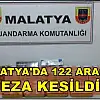 Malatya İl Jandarma Komutanlığı tarafından 20-26 Eylül 2016 tarihleri arasında Malatya genelinde çalışma yapıldı. Konuyla ilgili Malatya Valiliğinden yapılan yazılı açıklamada, çalışmalarda 4 kilo 475 gram kubar esrar maddesi, 840 paket gümrük kaçağı sigara ve 25 adet cep telefonu, asayiş olaylarında ise 2 adet tabanca, 4 adet şarjör, 86 adet değişik çaplarda fişek, 3 adet av tüfeği ve 8 adet CD ele geçirildiği bildirildi.