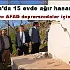 Hasar görev evlerde incelemelerde bulunan Vali Baruş, özellikle ağır hasar gören 15 evde kalınmaması adına Kızılay ve AFAD’ın gerekli önlemleri aldığını söyledi. AFAD’ın evi ağır hasar gören vatandaşlar için bölgeye çadır kurduğunu ve diğer ihtiyaçların da Kızılay tarafından karşılanacağını ifade eden Baruş, “Çok şükür can kaybımız ve yaralımız yok. Buradaki yapılar genelde eski kerpiç evler, hasara dayanması zor yapılar. Vatandaşların ağır hasar gören evlerde kalmalarının mahsurlu olduğunu belirledik. Çevre Şehircilik Müdürlüğü ekiplerimiz de tespitlere devam ediyor. 15 ağır hasarlı ev var, 50 civarında da az hasarlı evler var.” dedi.