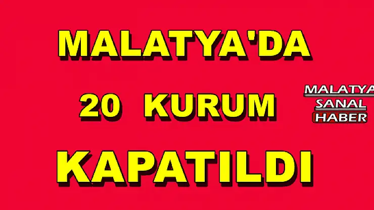 Malatya Valiliği’nden yapılan açıklamaya göre; FETÖ/PDY Terör Örgütü mensuplarına yönelik sürdürülen çalışmalar sonucunda, 5 özel okul, 1 özel kurs, 6 öğrenci yurdu, 8 dershane olmak üzere toplam 20 kurum İl Milli Eğitim Müdürlüğü tarafından kapatılarak faaliyetlerine son verildi.