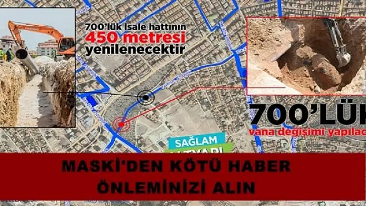 MASKİ’den konuyla alakalı olarak yapılan açıklamada, Kuyuönü Gönültaş Caddesinde 700’lük isale hattı yenileme ve 700’lük vana değişimi nedeniyle birçok mahallede geçici su kesintisi uygulamasının yapılacağı kaydedildi. Açıklamada, "Şehrimizi besleyen ana ishale hatlarında ömrünü doldurmuş vanalardan dolayı, kesinti yapılamıyordu. Bu sebepten Kaptajdan kesiliyordu. Küçük çapta bir arıza için dahi birçok mahalle susuz kalıyordu. Bu tür durumlarla tekrar karşılaşmamak ve sisteme müdahale edebilmek için suyumuzun bol olduğu bu mevsimde 700’lük vana değişimi yapılacaktır. Bu çalışma sayesinde ilerde küçük bir arıza olduğunda sadece bu bölgede kesinti yapılarak arıza giderilecektir” denildi.