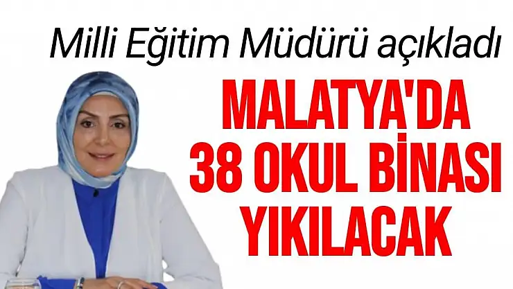 Malatya İl Milli Eğitim Müdürü Hatice Özdemir, Malatya´da 38 okul binasının yıkılacağını 122 binanın da inşaatının devam ettiğini belirtti.