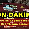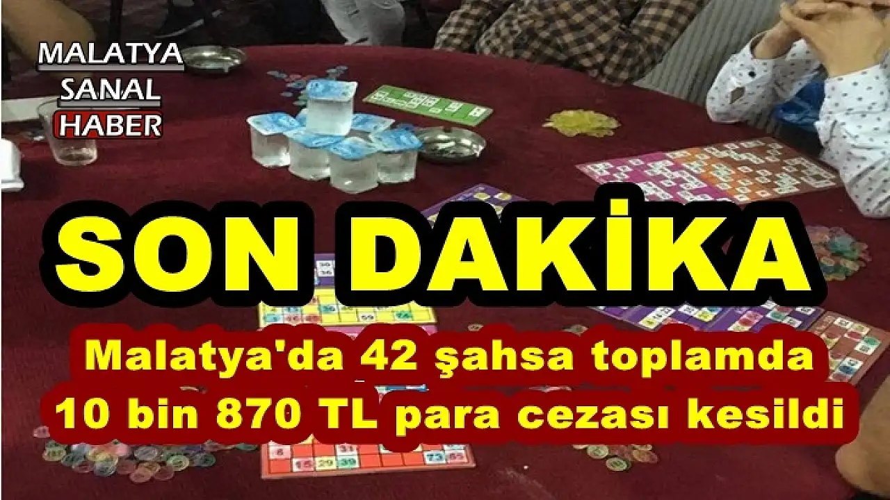 Malatya’da polis ekiplerinin düzenlediği operasyonda yasa dışı tombala oynadığı tespit edilen 42 şahsa toplam 10 bin 870 TL para cezası kesildi.