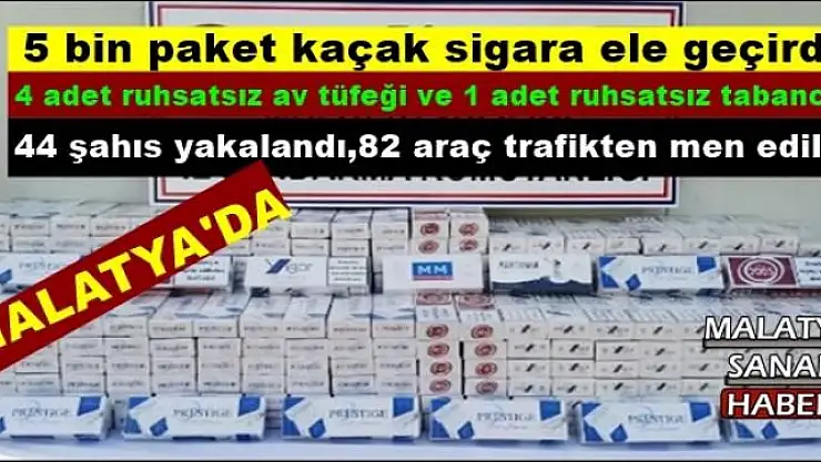 Açıklamada, kaçakçılık olaylarında bir otobüsün yolcu koltuğu altında, yanlarında ve araç stepne içerisine gizlenmiş vaziyette toplam 5 bin paket kaçak sigara ele geçirildiği belirtildi. Açıklamada, asayiş olaylarında ise 4 adet ruhsatsız av tüfeği ve 1 adet ruhsatsız tabanca ele geçirildiği bilgisi verildi.
