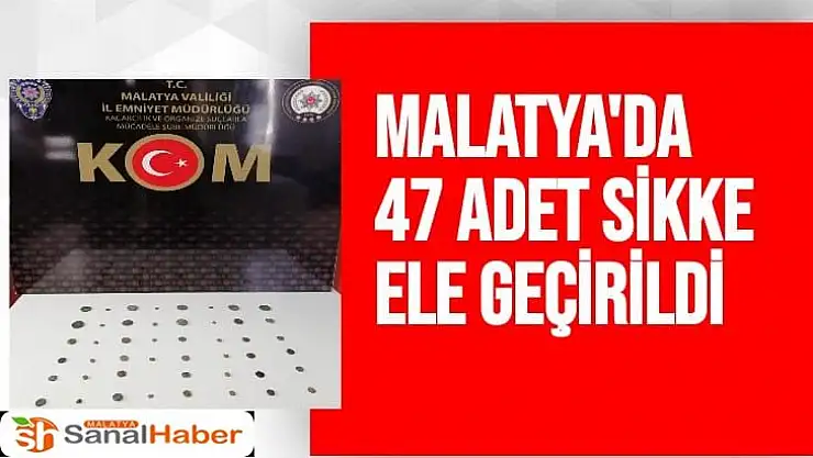Malatya Emniyet Müdürlüğü KOM Şube Müdürlüğü görevlileri, tarihi eser kaçakçılarına yönelik operasyon yaptı. Yapılan operasyon kapsamında bir şahsın ikametinde yapılan aramada 47 adet tarihi eser olduğu değerlendirilen sikke ele geçirildi. Ele geçirilen tarihi sikkelerle ilgili 2 şüpheli gözaltına alındı.