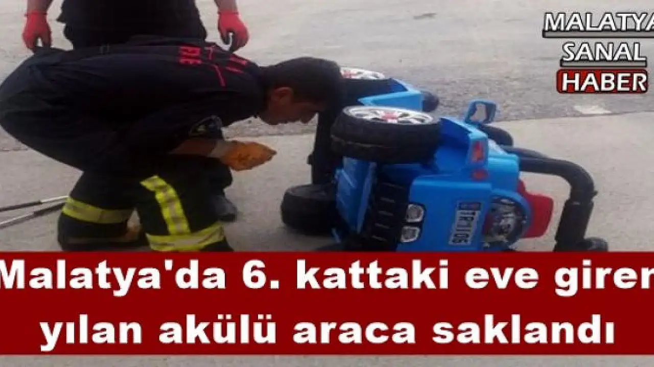 Malatya'da bir binanın 6. katındaki daireye giren yılan evdeki oyuncak akülü arabaya saklandı. Yılanı itfaiye ekipleri kısa sürede yakaladı.