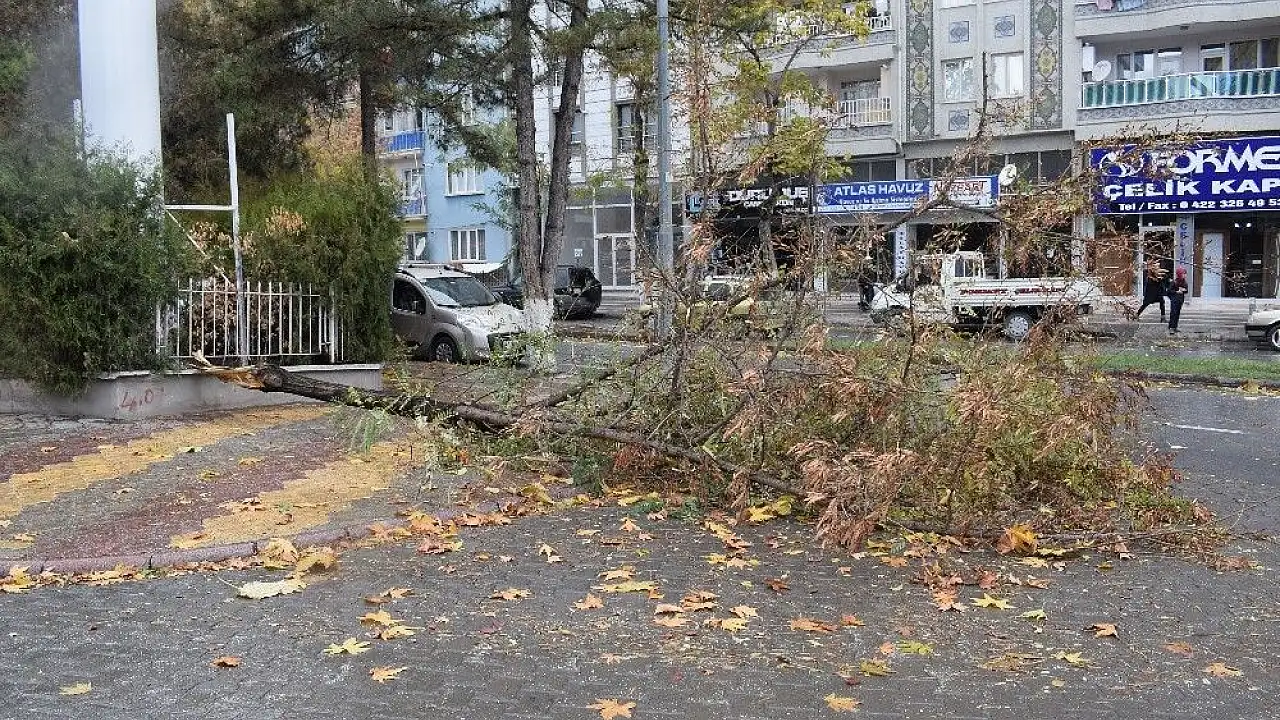 Malatya'da ağaç otomobilin üzerine düştü