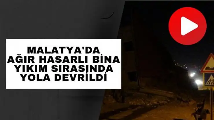 Malatya’da ağır hasarlı bir bina, yıkım işlemleri sırasında yola devrildi.
