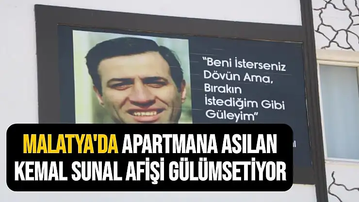 Türk sinemasının unutulmaz isimlerinden Kemal Sunal´a hayranlık vefatının üstünden yıllar geçse de bitmiyor. Sunal´ın memleketi olan Malatya´nın Yeşilyurt ilçesine bağlı Zaviye Mahallesi´nde bulunan Yıldız Sitesi´nde bulunan bir apartmana usta oyuncunun `Beni isterseniz dövün ama bırakın istediğim gibi güleyim´ sözlerinin ve fotoğrafının yer aldığı afiş asıldı. Apartmanın dış cephesinde bulunan afiş vatandaşların ilgi odağı olurken görenleri de gülümsetiyor. Afişi ilk kez görenler fotoğraf çekmeyi de unutmuyor.