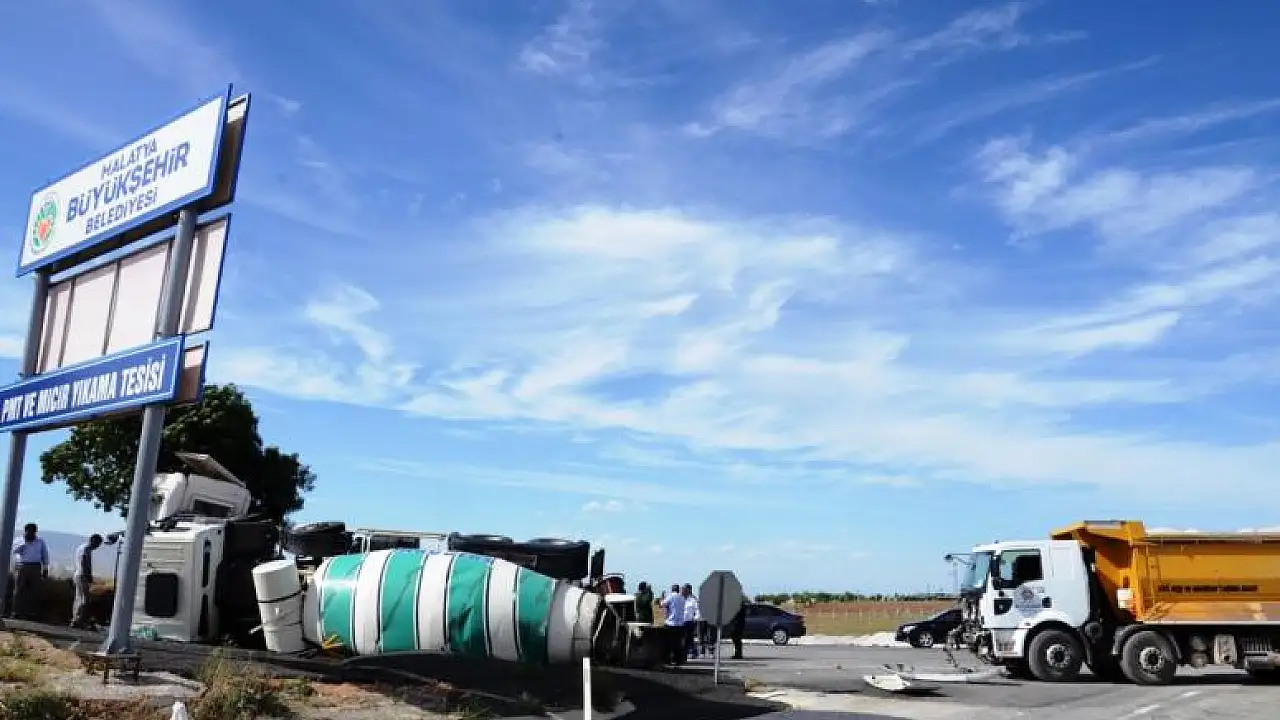MALATYA'DA BETON MİKSERİ, HAFRİYAT KAMYONU İLE ÇARPIŞTI
