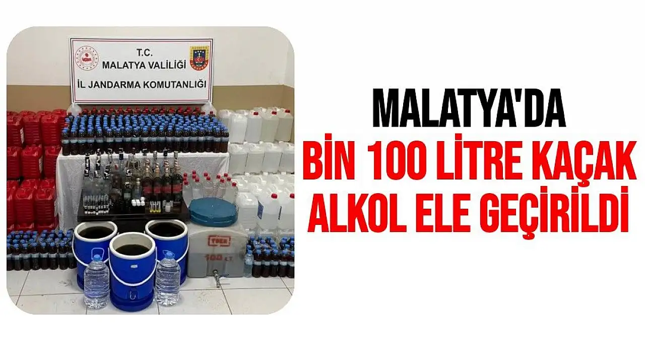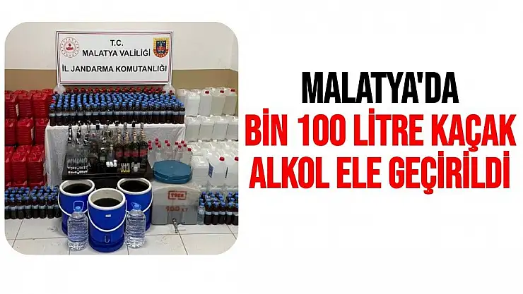Malatya´da jandarma ekipleri tarafından iki şüpheli şahsa ait 4 adrese yapılan operasyonda bin 100 litre kaçak alkol ele geçirildi.