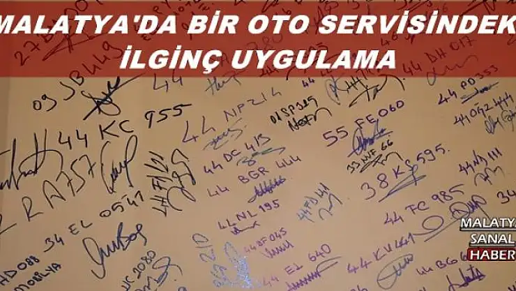 Malatya Küçük Sanayi Sitesi'nde faaliyet gösteren bir oto servisinde başlatılan sıra dışı bir uygulama müşterilerden de büyük ilgi görüyor. Sıra dışı uygulama ile araçlarını bakıma getiren sürücüler, burada oluşturulan alana plakalarını yazarak imza atıyor.