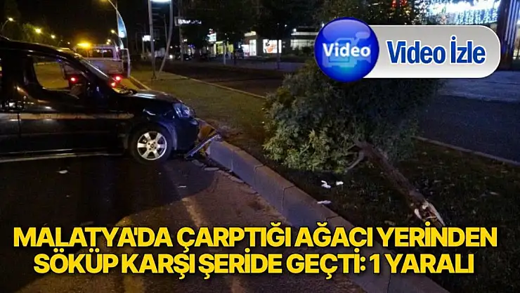 Malatya'da Çarptığı ağacı yerinden söküp karşı şeride geçti