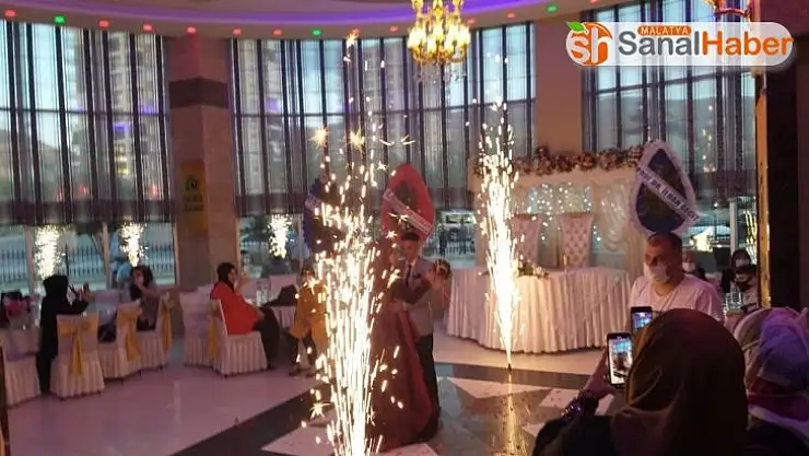 Dünyayı etkisi altına alan korona virüs (Covid-19) nedeniyle ertelenen düğün törenleri, yaklaşık 4 ay aradan sonra yeniden yapılmaya başlandı. Maske ve sosyal mesafe kurallarına uyulan düğün törenine katılan misafirler salona ateşleri ölçülerek alınırken, düğünde ise tedbirler kapsamında davetlilerin oynamasına izin verilmedi. Gelin ve damadın alkışlarla salona gelmesinin ardından başlayan düğünde, takılar ise zarflara konularak sandığa bırakıldı.