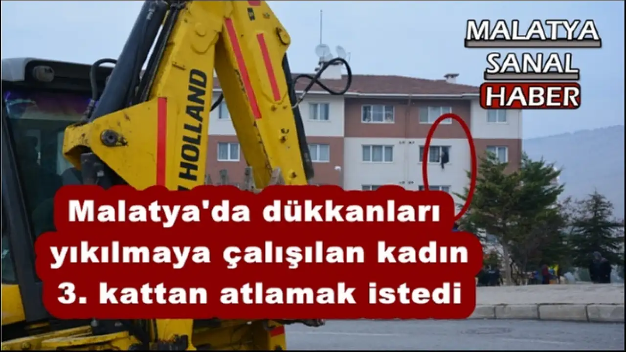 Malatya'da dükkanları yıkılmaya çalışılan kadın 3. kattan atlamak istedi