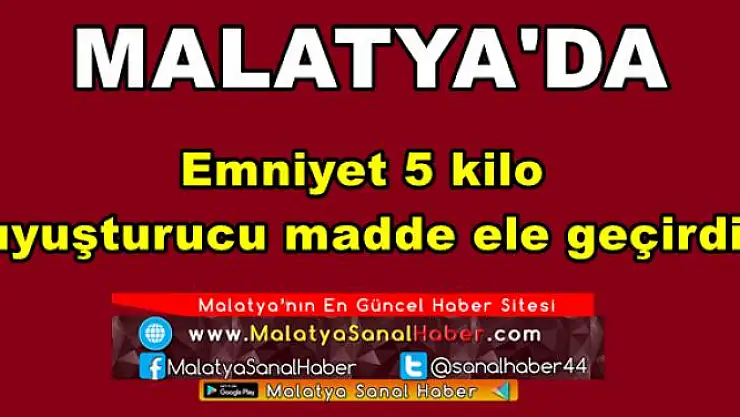 Malatya'da Emniyet 5 kilo uyuşturucu madde ele geçirdi