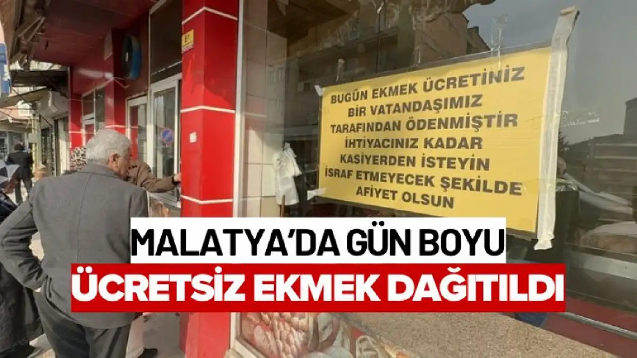 Antalya’da yaşadığı öğrenilen Malatyalı bir iş insanı, Sarıcıoğlu Mahallesi’nde bulunan Kervan Ekmek Fabrikası ile iletişime geçerek kandil vesilesiyle ekmeklerin ücretsiz olarak dağıtılmasını istedi. Sabah saatlerinde başlayan yardım, akşam saatlerine kadar devam etti. Vatandaşlar, fırından ihtiyaçları kadar ekmeği ücretsiz aldı.