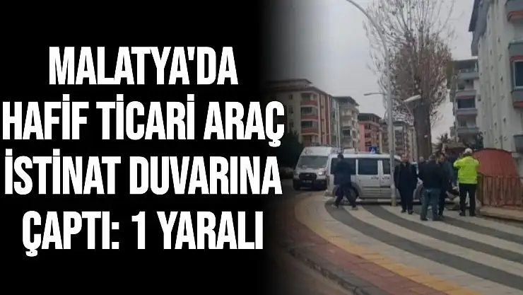 Malatya´da sürücünün kontrolünden çıkan hafif ticari araç istinat duvarına çarptı. Kazada duvardan kopan parçanın üzerine düştüğü yaya yaralandı.