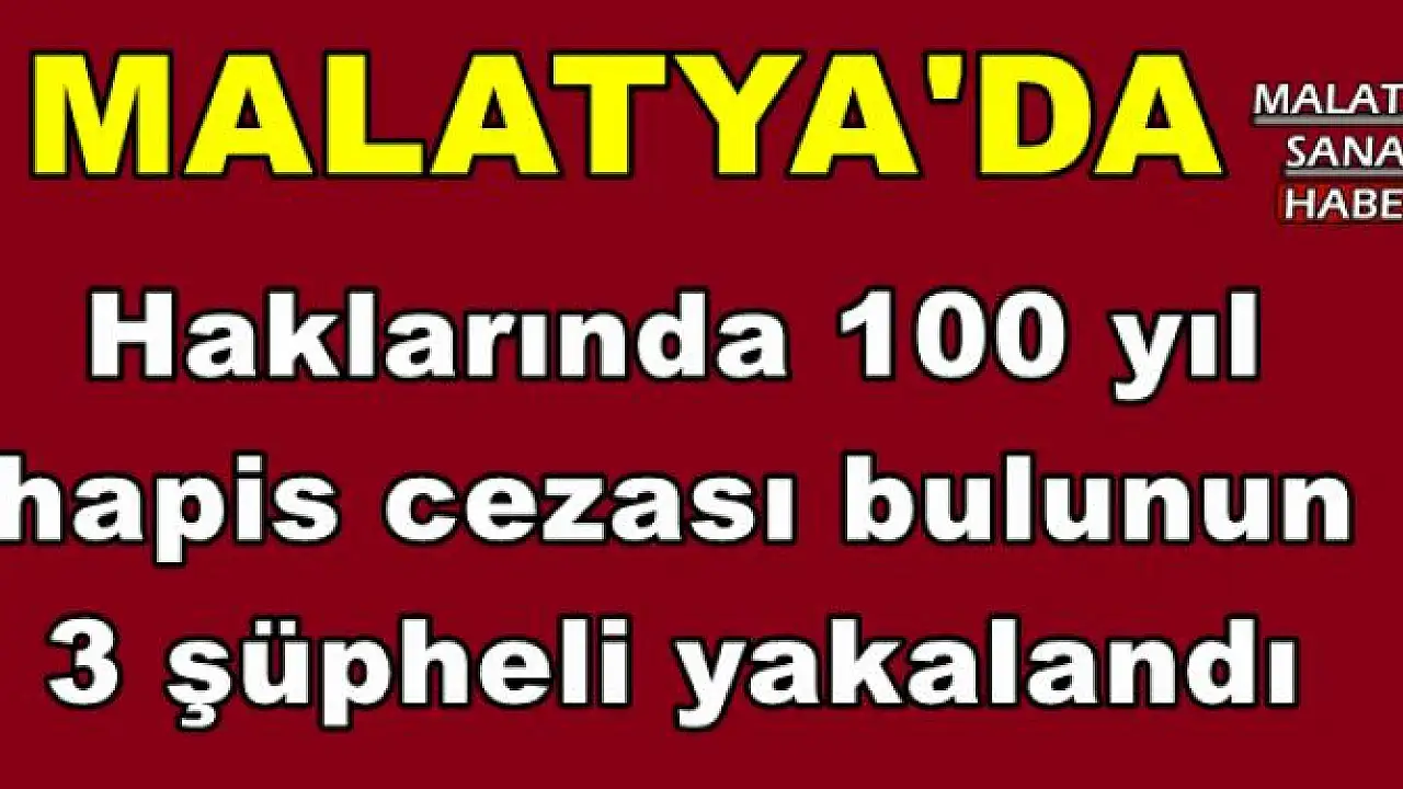 Malatya Asayiş Şube Müdürlüğü ekiplerince haklarında kesinleşmiş toplam 100 yıl hapis cezası bulunan 3 şüpheli yakalandı.