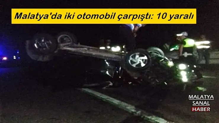 Adıyaman Malatya karayolu üzerinde 2 otomobilin çarpışması sonucu meydana gelen kazada 10 kişi yaralandı.