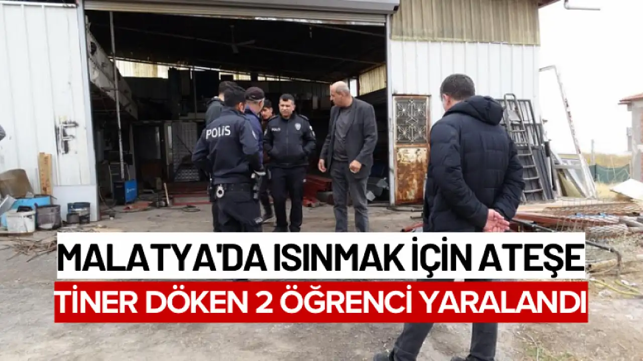 Malatya'da bir demir doğrama atölyesinde staj yapan 2 öğrenci, ısınmak için yaktıkları ateşe tiner dökmeleri sonucu yaralandı.