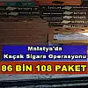 Malatya'da polis ekipleri, bir kamyonda yaptıkları aramada, 86 bin 108 paket gümrük kaçağı sigara ele geçirdi.