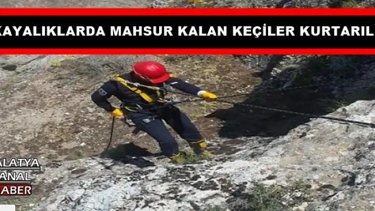 Malatya'nın Darende ilçesinde kayalıklarda mahsur kalan 3 keçi itfaiye ekipleri tarafından kurtarıldı.