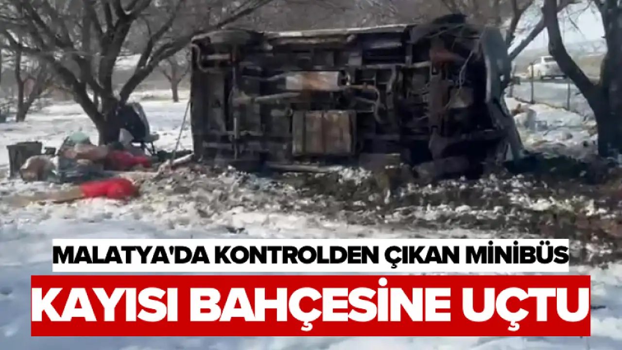 Malatya'da kontrolden çıkan minibüs kayısı bahçesine uçtu
