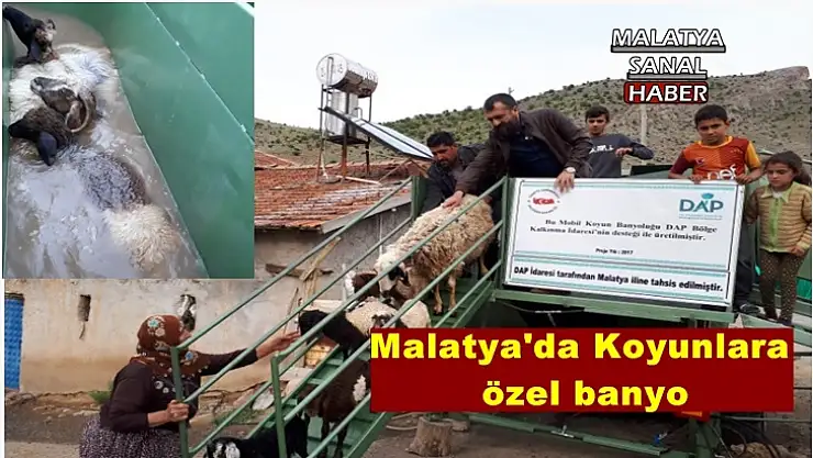 Malatya İli Damızlık Koyun Keçi Yetiştiricileri Birliği tarafından yaylalarda bulunan küçükbaş hayvanlara banyo yaptırılıyor. Sıcaktan bunalan koyun ve keçiler özel tasarlanan banyolukta soğuk suyla serinlerken, ilaçlamayla parazit ve kenelere karşı da korunuyor. Doğu Anadolu Projesi (DAP) projesi kapsamında alınan ve yaylalara götürülen mobil banyo havuzu, parazit ve kene ile mücadelenin yanı sıra hayvan sağlığında da etkin rol alacak.