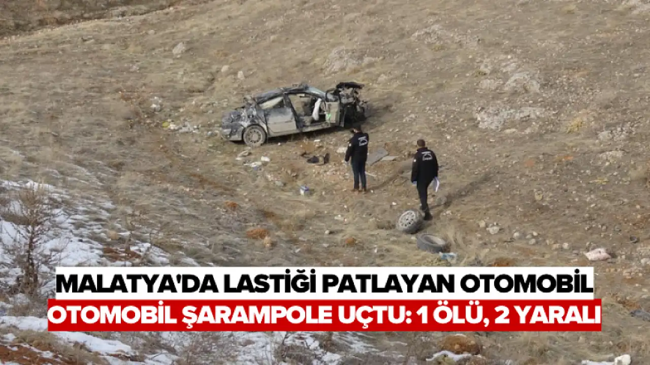 Malatya'da lastiği patlayan otomobilin şarampole devrilmesi sonucu meydana gelen trafik kazasında 1 kişi hayatını kaybetti, 2 kişi ağır yaralandı.