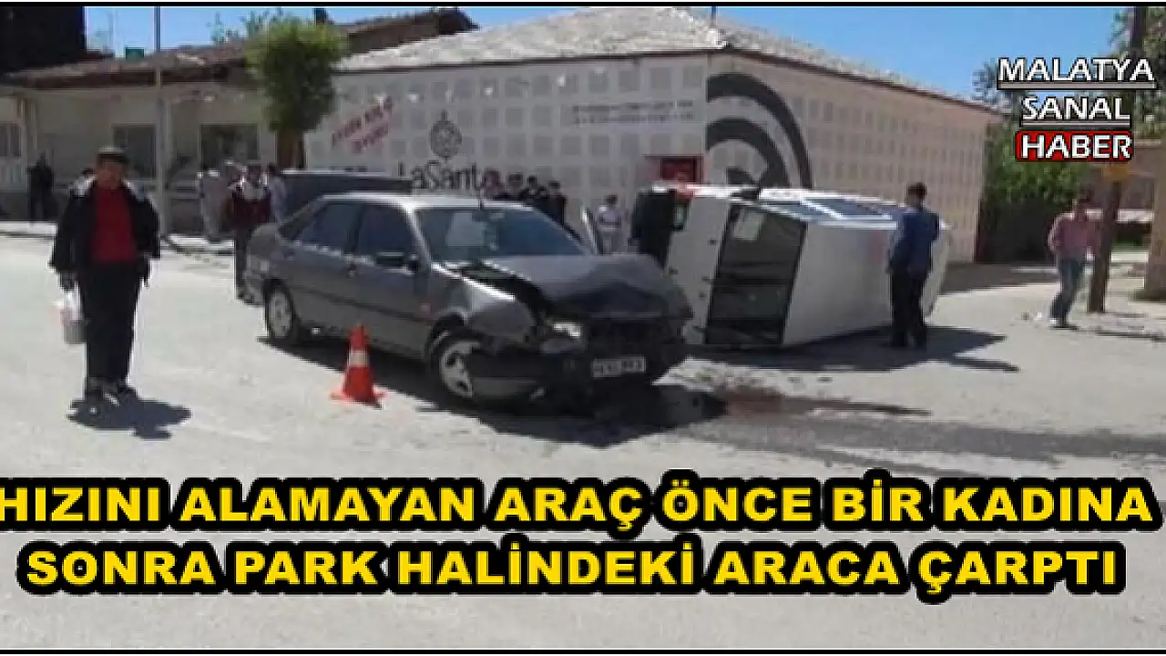 Malatya, Özalper Mahallesi Yenibahar Caddesinde, aşırı hız yapan sürücü ortalığı birbirine kattı. 63 YT 941 plakalı araç sürücüsü aşırı hız yaptığı caddede Necla Göçen isimli kadına çarptı. Hızını alamayan araç daha sonra park halindeki 44 EF 593 plakalı Mehmet Şahin’e ait araca çarparak yan yattı. Çevredekiler tarafından araçtan çıkarılan ismi öğrenilemeyen sürücü ile aracın çarptığı bir kadın ambulansla Malatya Devlet Hastane’sine kaldırılarak tedavi altına alınırken polis olayla ilgili soruşturma başlattı.