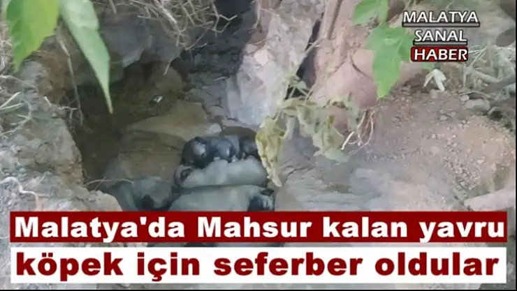 Malatya’da bir çukurda mahsur kalan yavru sokak köpeği, mahalledeki çocuklar ve vatandaşların hummalı çalışması ile kurtarıldı.